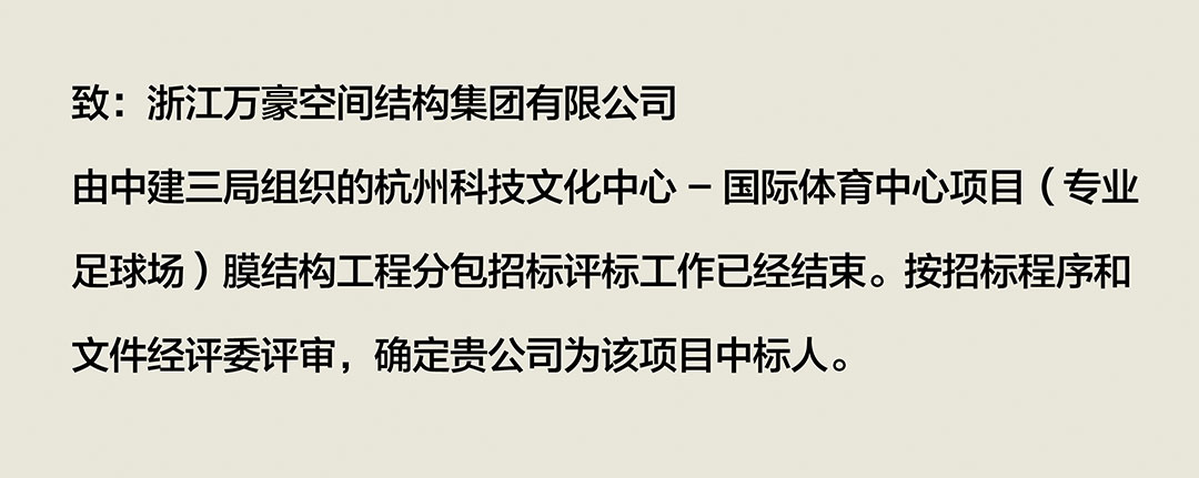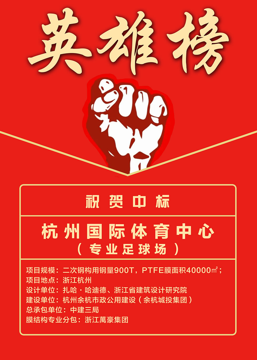 年底收官!恭喜浙江萬豪集團中標-杭州國際體育中心(專業足球場)膜結構工程